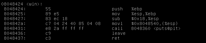 And we got the address 0x08048424