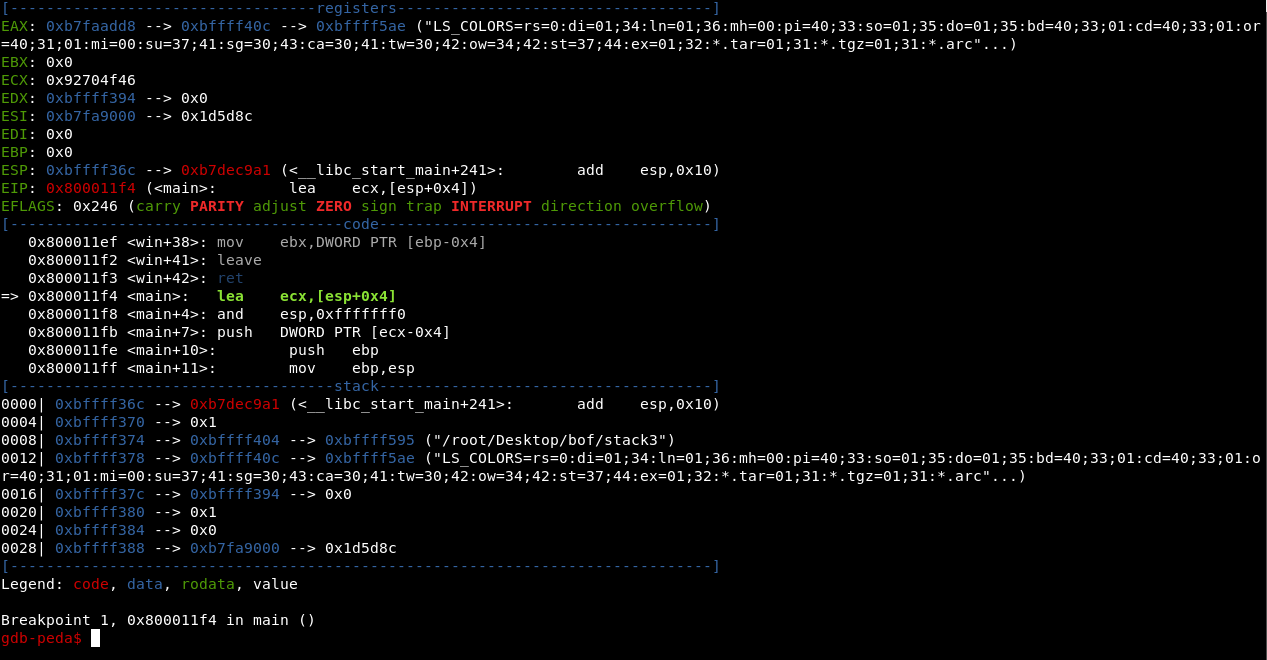 Now let’s run the program in gdb , I’m using gdb-peda