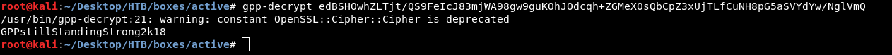 To decrypt it there’s a tool called gpp-decrypt. If you’re not on kali get it from here