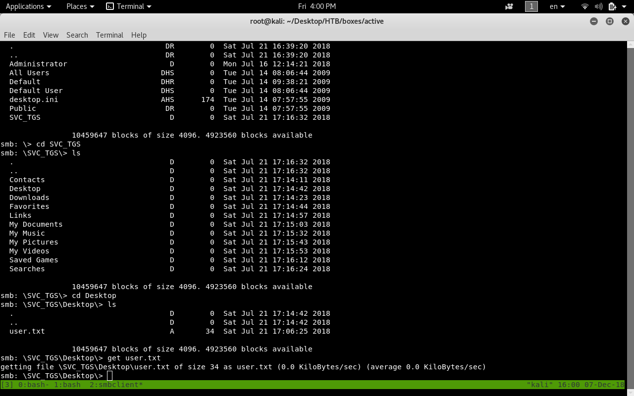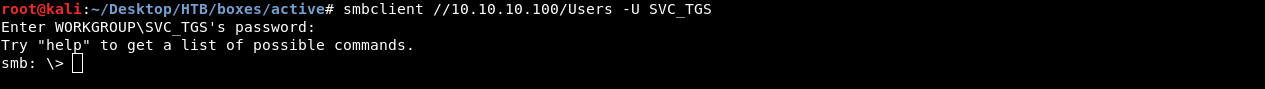 smbclient //10.10.10.100/Users -U SVC_TGS