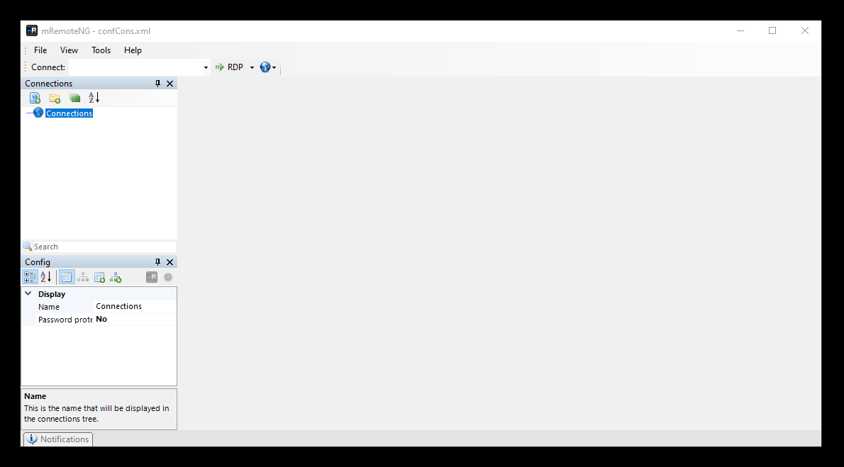 <mrng:Connections xmlns:mrng="http://mremoteng.org" Name="Connections" Export="false" EncryptionEngine="AES" BlockCipherMode="GCM" KdfIterations="1000" FullFileEncryption="false" Protected="ZSvKI7j224Gf/twXpaP5G2QFZMLr1iO1f5JKdtIKL6eUg+eWkL5tKO886au0ofFPW0oop8R8ddXKAx4KK7sAk6AA" ConfVersion="2.6">