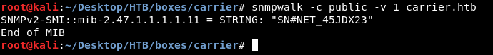 snmpwalk -c public -v 1 carrier.htb