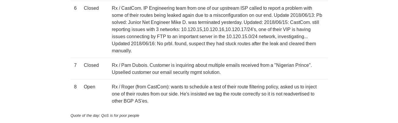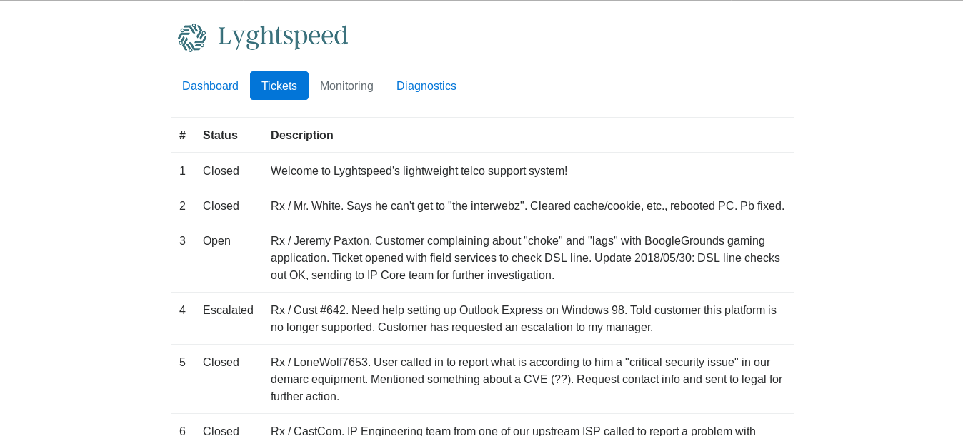 If we take a look at the tickets again , ticket number 6 :