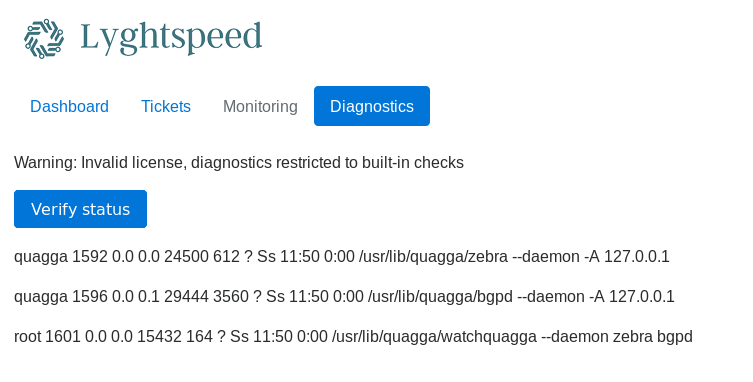Diagnostics has a button saying verify status :