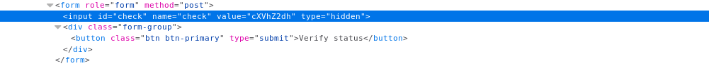 By looking at the source we find a hidden field called check , also if we used burp to intercept the requests we will find it. The value of check is base64 encoded string of “quagga” :
