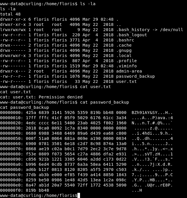 We don’t have read access to user.txt , but we notice a file called password_backup , by looking at that file :