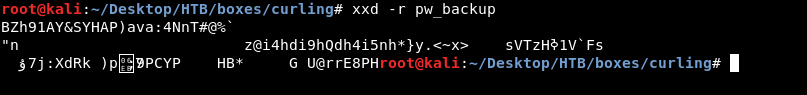To reverse a hex dump file we will use xxd , so xxd -r pw_backup :