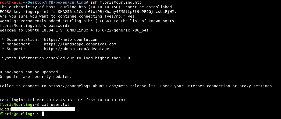 We will notice a name in one of the posts : Floris , now we can try to login as floris with the password Curling2018! :