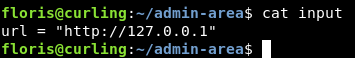 Even the name of the box is a hint curling , so what about changing that url from localhost to something else like a file ? Next time the command gets executed we will get the contents of that file , maybe root.txt ? But only if it’s getting executed by root. Let’s try and see if it will work :