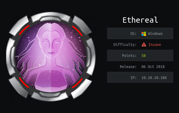 Hey guys today Ethereal retired and here is my write-up about it. And as the difficulty says , It’s insane ! The most annoying part about this box is that it was very hard to enumerate because we only get a blind RCE and the firewall rules made it even harder because it only allowed TCP connection for 2 ports. It was fun and annoying at the same time but I liked it. It’s a Windows box and its ip is 10.10.10.106 I added it to /etc/hosts as ethereal.htb , Let’s jump right in !