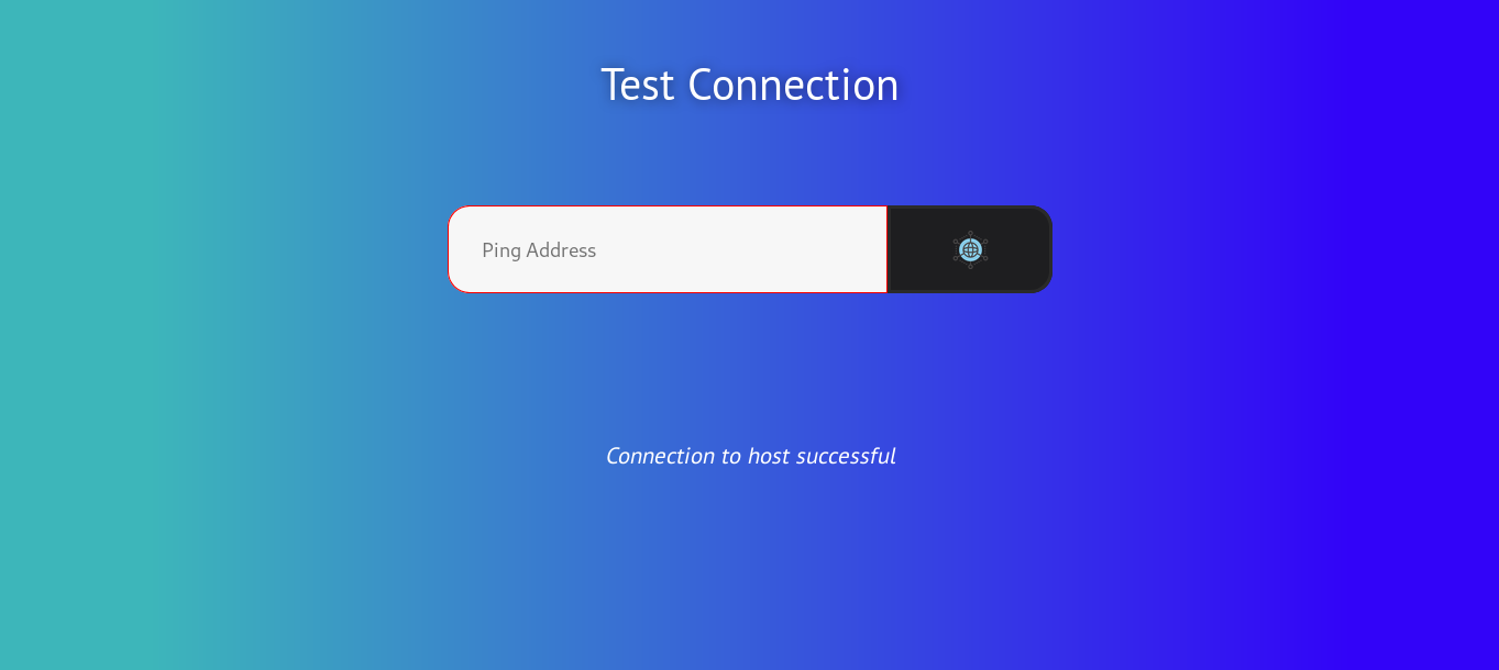 Now after we login we get the “Test Connection” page and we have an input for the ip address to ping.