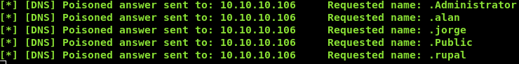 We have 5 users on the box alan , jorge , Public , rupal and Administrator. We are executing commands as alan