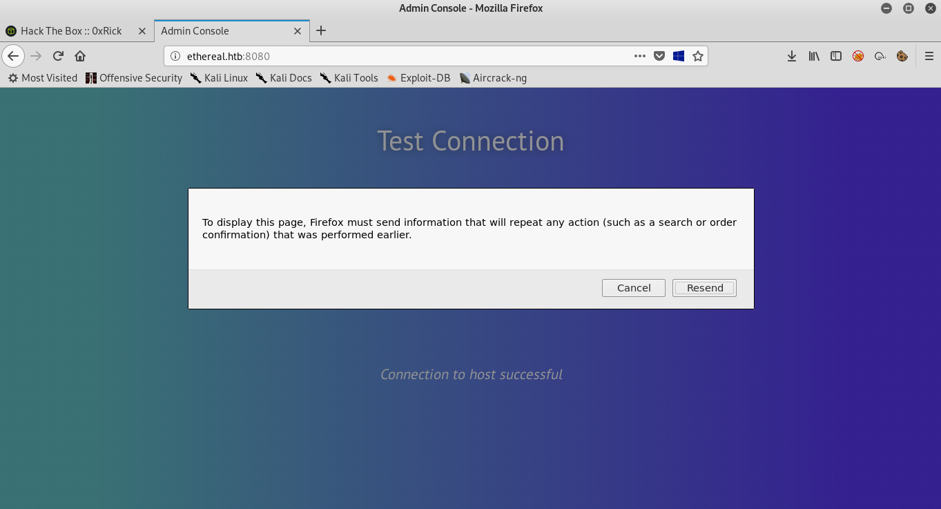 So now we know what’s on port 8080 , the “Test Connection” page. But we need credentials to access it.