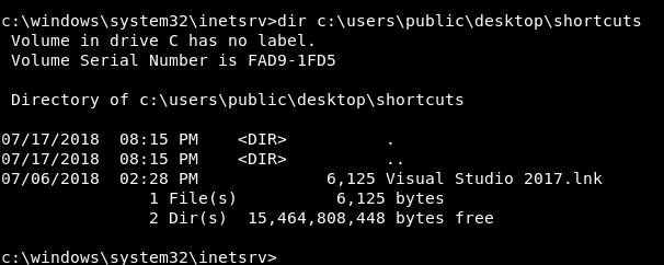 Then we will list the contents of c:\users\public\desktop\shortcuts :