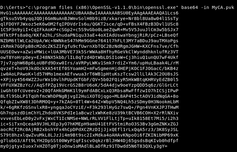 C:\progra~2\OpenSSL-v1.1.0\bin\openssl.exe base64 -in MyCA.pvk