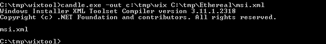 We will use candle.exe from wixtools to create a wixobject from msi.xml