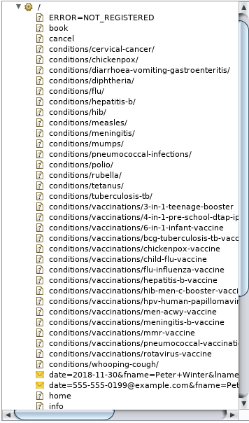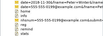 In the patients section there were some pages to book an appointment (/?book), send a reminder (/?remind) or to cancel an appointment (/?cancel). To book an appointment we need a valid patient’s name. After some enumeration I found some names in /?info :