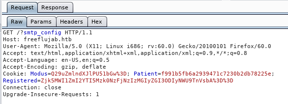 I requested /?smtp_config in the browser and looked at the request in burp :