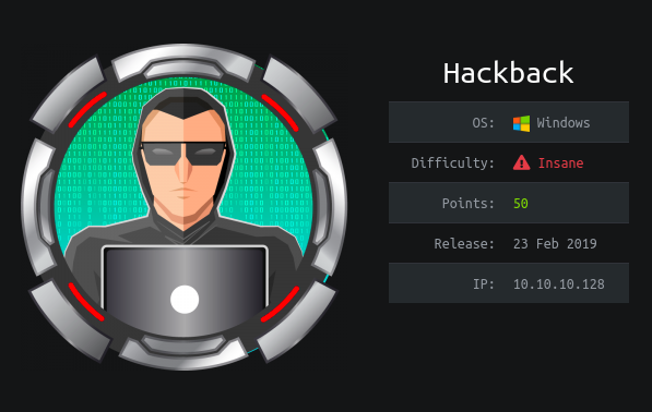 Hey guys today Hackback retired and here’s my write-up about it. Hackback was a very hard machine full of different steps and rabbit holes. It’s a Windows machine and its ip is 10.10.10.128, I added it to /etc/hosts as hackback.htb. Let’s jump right in !