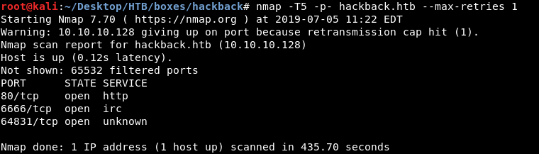 nmap -sV -sT -sC hackback.htb