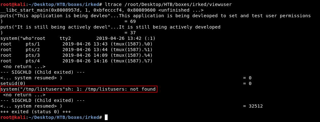 When I did ltrace on the binary I found that it executes /tmp/listusers :