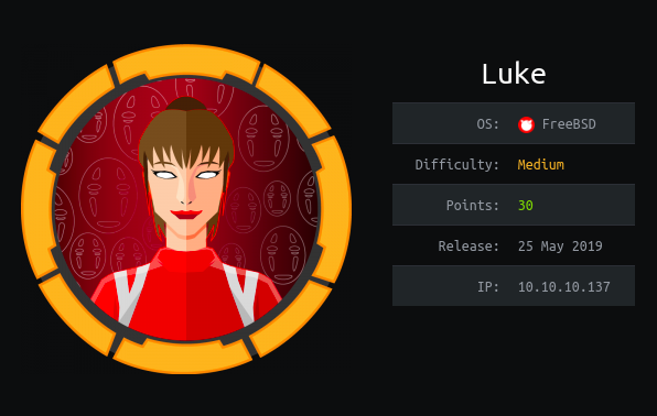 Hey guys today Luke retired and here’s my write-up about it. It was an easy machine, all you need to do is to enumerate well and you’ll find what you need. It’s a FreeBSD box and its ip is 10.10.10.137, I added it to /etc/hosts as luke.htb. Let’s jump right in !