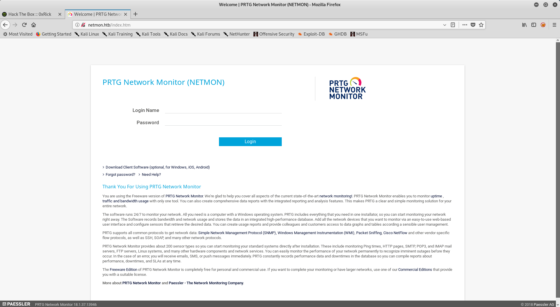 Hey guys today Netmon retired and here’s my writeup about it. It was a very easy machine that’s everything I can say about it. It’s a Windows box and its ip is 10.10.10.152, I added it to /etc/hosts as netmon.htb. Let’s jump right in !