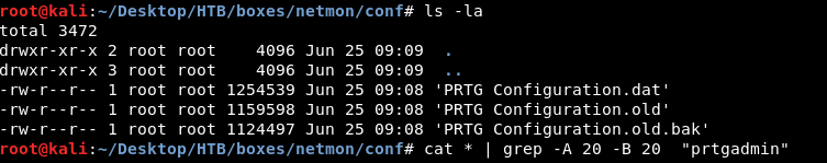 cat * | grep -A 20 -B 20 "prtgadmin"