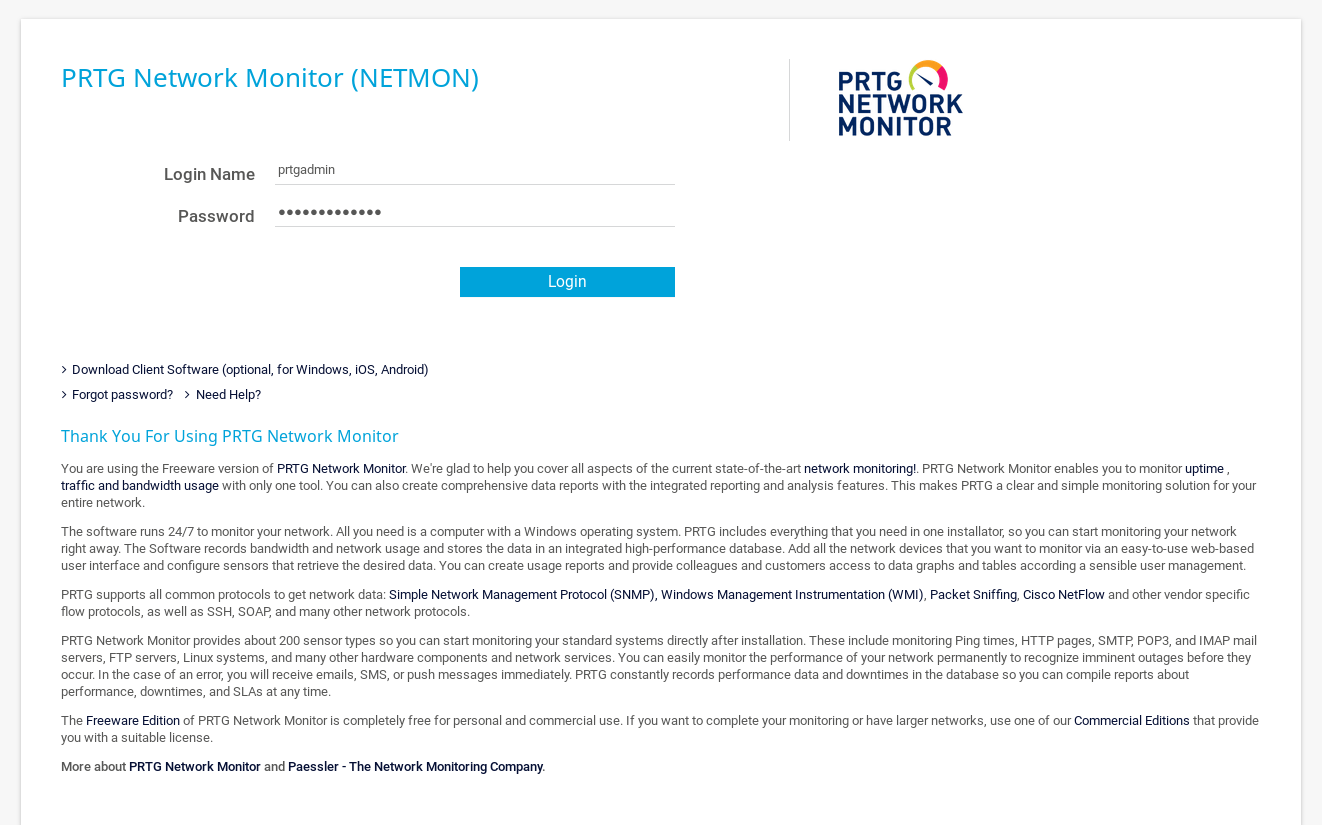 I checked the http service and found a web application called PRTG Network Monitor. However we need credentials to access the application.