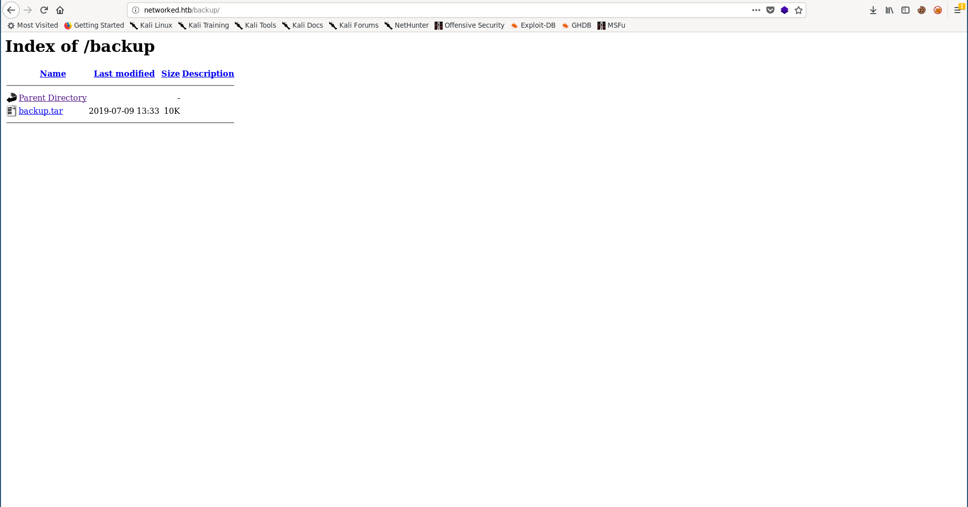 root@kali:~/Desktop/HTB/boxes/networked# mkdir backup
