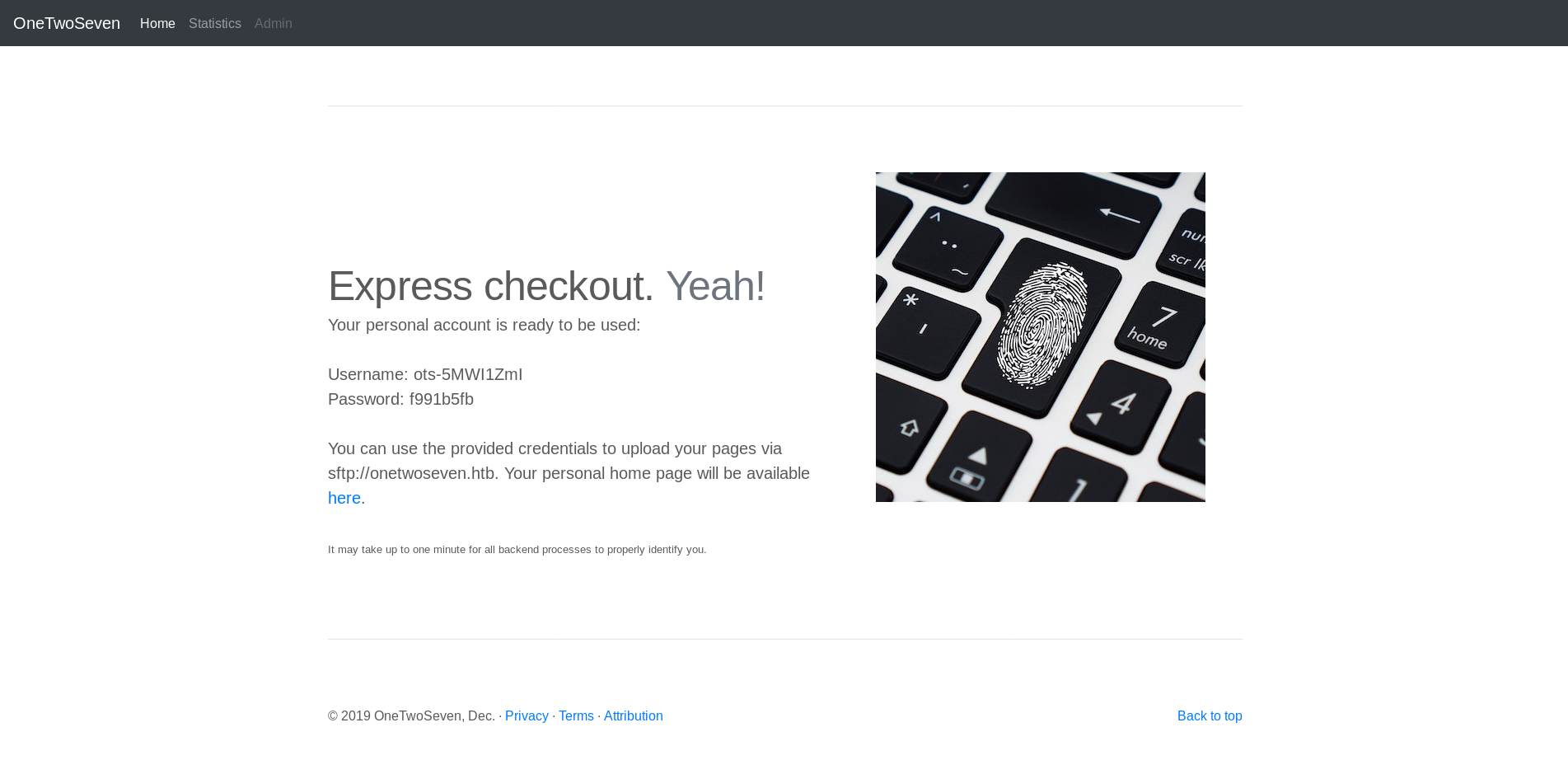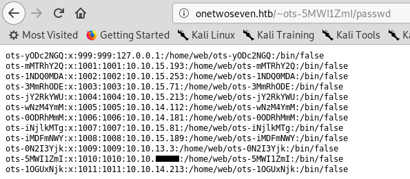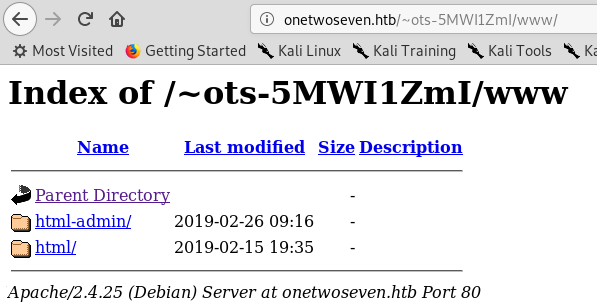 and we also have a personal home page (http://onetwoseven.htb/~ots-5MWI1ZmI/) which looks like this :