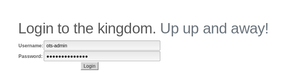 Usernames were following the same pattern which was ots- then a base-64 encoded string , I tried to decode the string from my username (5MWI1ZmI) but I got nothing readable, so I tried to encode my password (f991b5fb) :