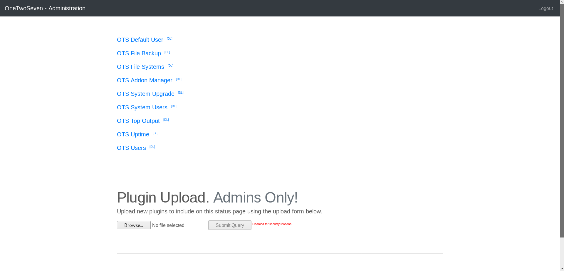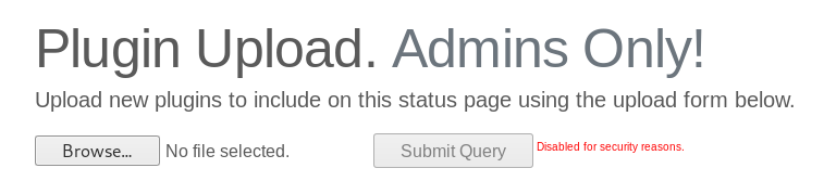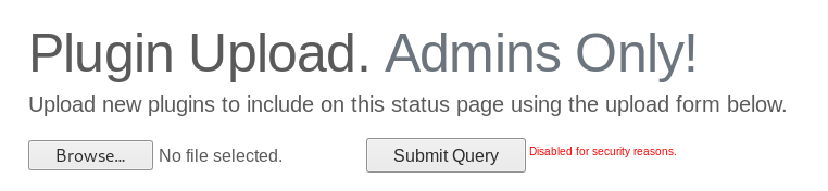 Home is where we are, statistics just shows stuff like up-time, banned ip addresses etc.., there’s a page titled Admin and it’s disabled, let’s look at the html source :