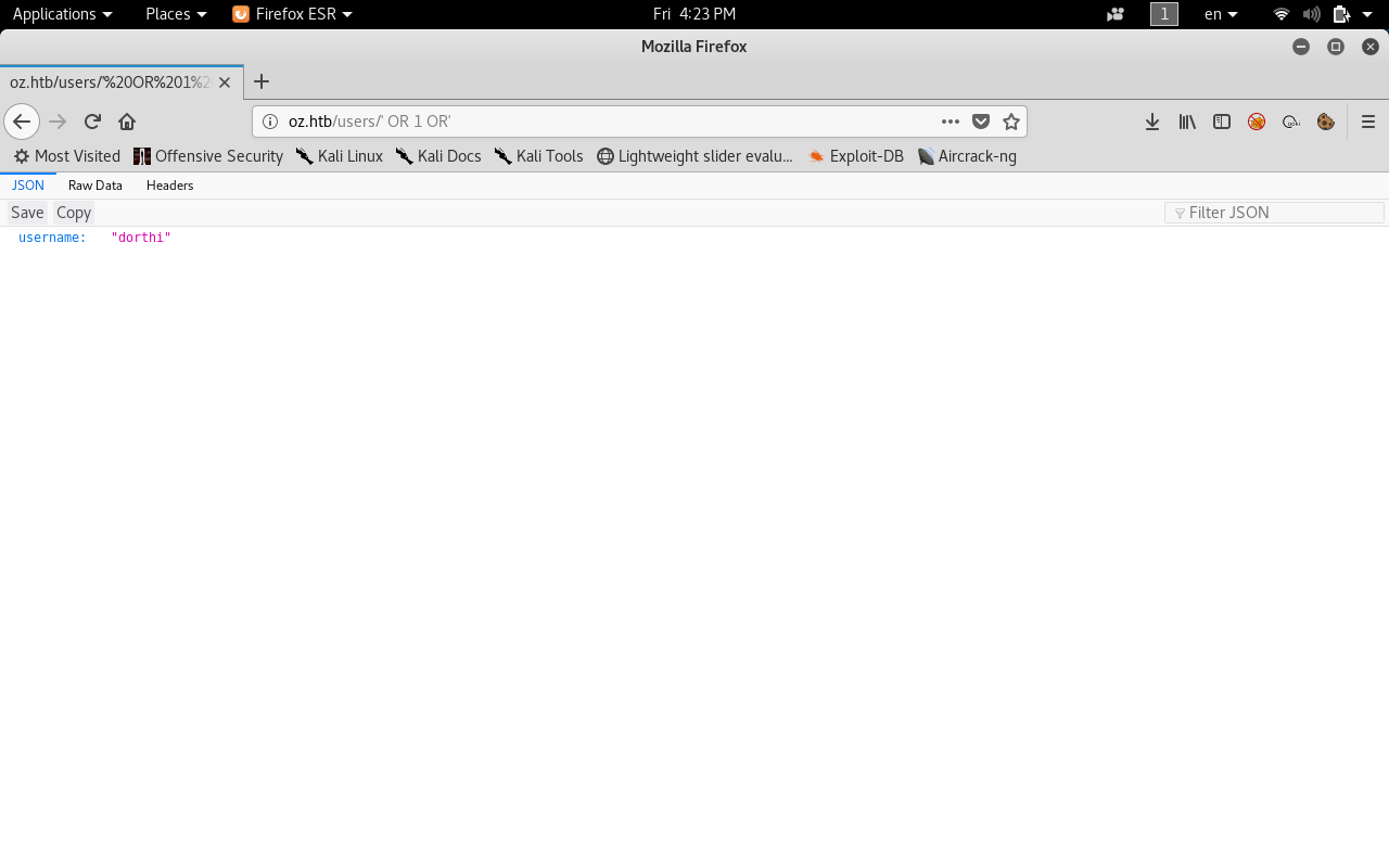 We get another username : “dorthi” , So this is a confirmation that it’s vulnerable to sqli , Let’s do another injection and see if we can enumerate users