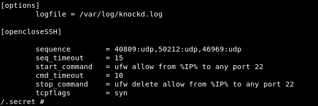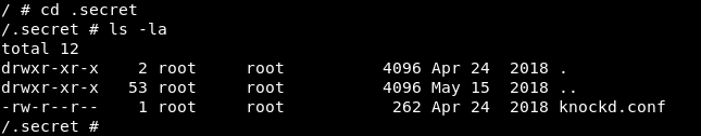 After some enumeration we will find in / two unusual dirs containers and .secret , in .secret there is a file called knockd.conf