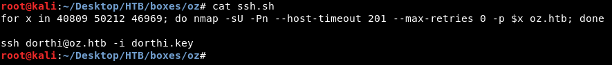 Now we know the port sequence let’s ssh into the box. We can use knockd to do that but I used a small script that uses nmap.