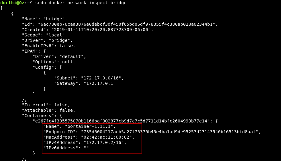 sudo docker network inspect bridge