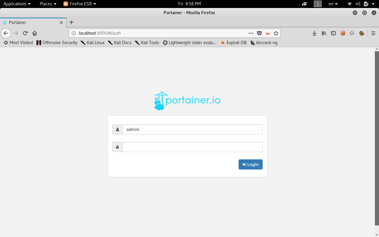 Now when we visit localhost on port 9000 we get a login page.