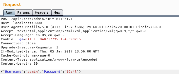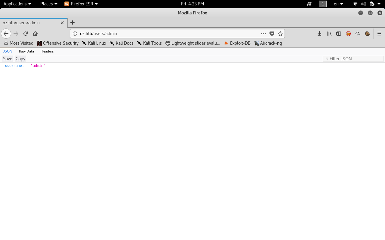 We get a json response username : "admin"