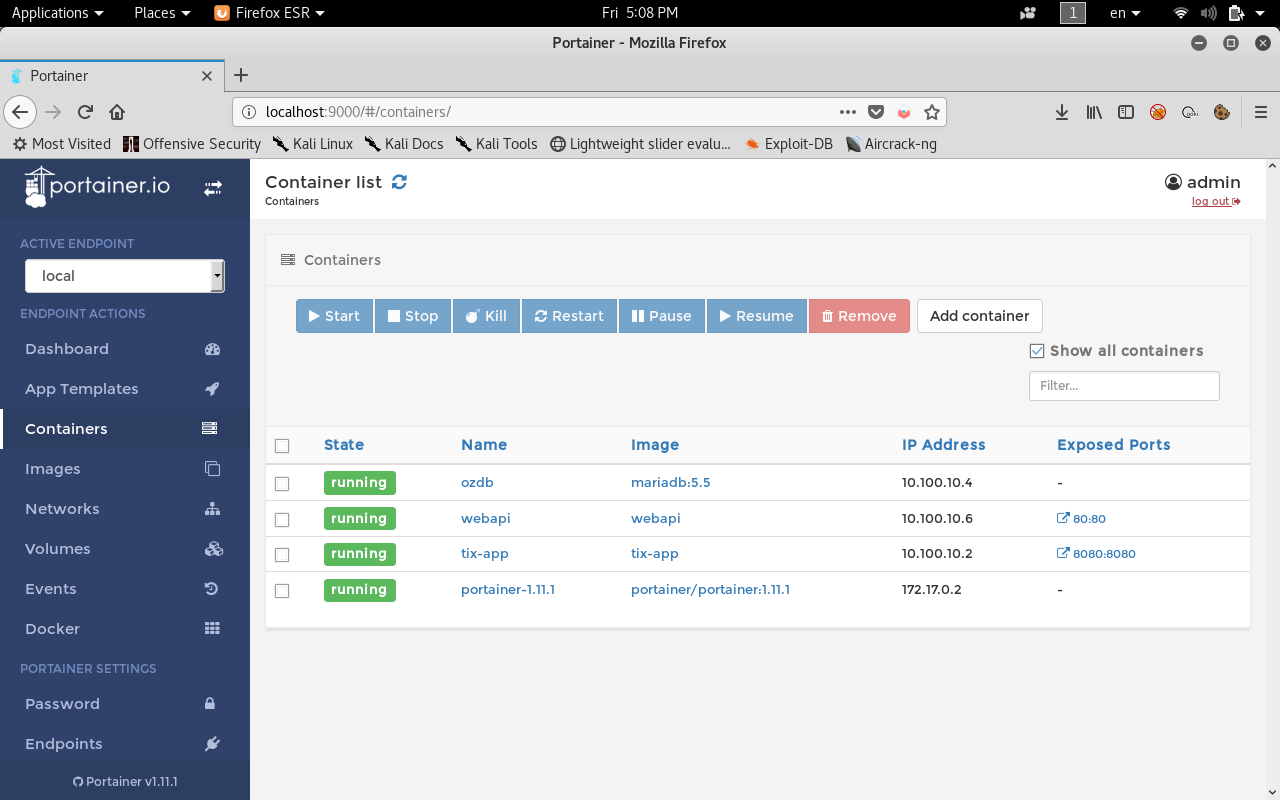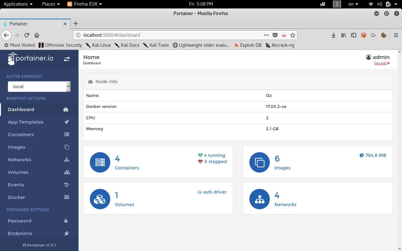 We find portainer-1.11.1 and its ip is 172.17.0.2 , Portainer is the user interface for docker management and it usually runs http on port 9000 , we can also check that by using nmap. Luckily it’s installed on the box.