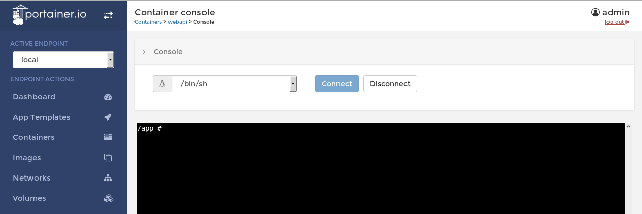 If we check the container webapi we can use its console.